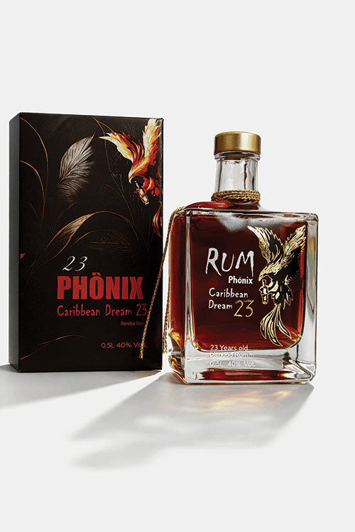 Der Phönix Rum Caribbean Dream 23 ist ein außergewöhnlicher Blend aus sieben sorgfältig ausgewählten karibischen Rumsorten. Die Rumsorten reifen 23 Jahre, was ihm seine unvergleichliche Tiefe und Komplexität verleiht. Die Rumsorten stammen unter anderem aus Cuba, Venezuela und Barbados. Diese werden importiert und von der ETM Handels GmbH in Österreich geblendet. Damit sich diese verschiedenen Rumsorten vollständig verbinden, wird der Rum anschließend für mehrere Wochen in Eichenfässern gelagert.