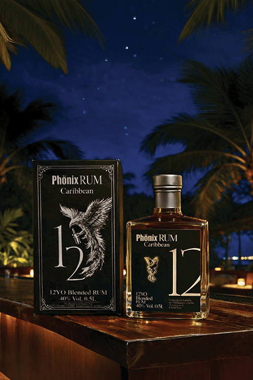 Der Phönix Caribbean 12 Rum ist ein exklusiver Blend aus sieben Rumsorten, die aus den besten Regionen der Karibik und Südamerikas stammen, darunter Venezuela, Guatemala und Panama. Diese reifen 12 Jahre, bevor sie vermischt werden. Damit sich die verschiedenen Rumsorten vollständig verbinden, wird der Blend für mehrere Wochen in Eichenfässern gelagert. Die Rumsorten werden in Österreich von der ETM Handels GmbH geblendet, was zu dem einzigartigen Phönix Rum führt.
